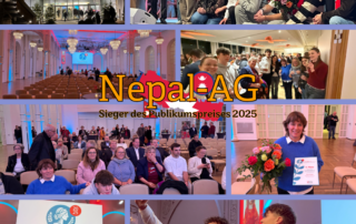 Nach den vielen beeindruckenden Ehrungen folgte dann als letzter zu vergebender Preis der Publikumspreis, welcher durch ein öffentliches Online-Voting ermittelt wurde. Zwar war die Hoffnung auf den Gewinn des Preises da, doch niemand konnte ernsthaft mit einem Sieg rechnen. Dann erfolgte die Verkündung und die große Überraschung: Die Nepal-AG der Gesamtschule Mechernich gewinnt den Publikumspreis 2025 und damit 3.000 Euro Preisgeld.